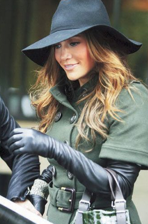 This style reflects the bold accessory choices often associated with icons like Jennifer Lopez — where gloves are not just for warmth, but a fashion statement. The sleek leather finish adds elegance, while the extended length enhances the silhouette and brings a touch of vintage glamour.